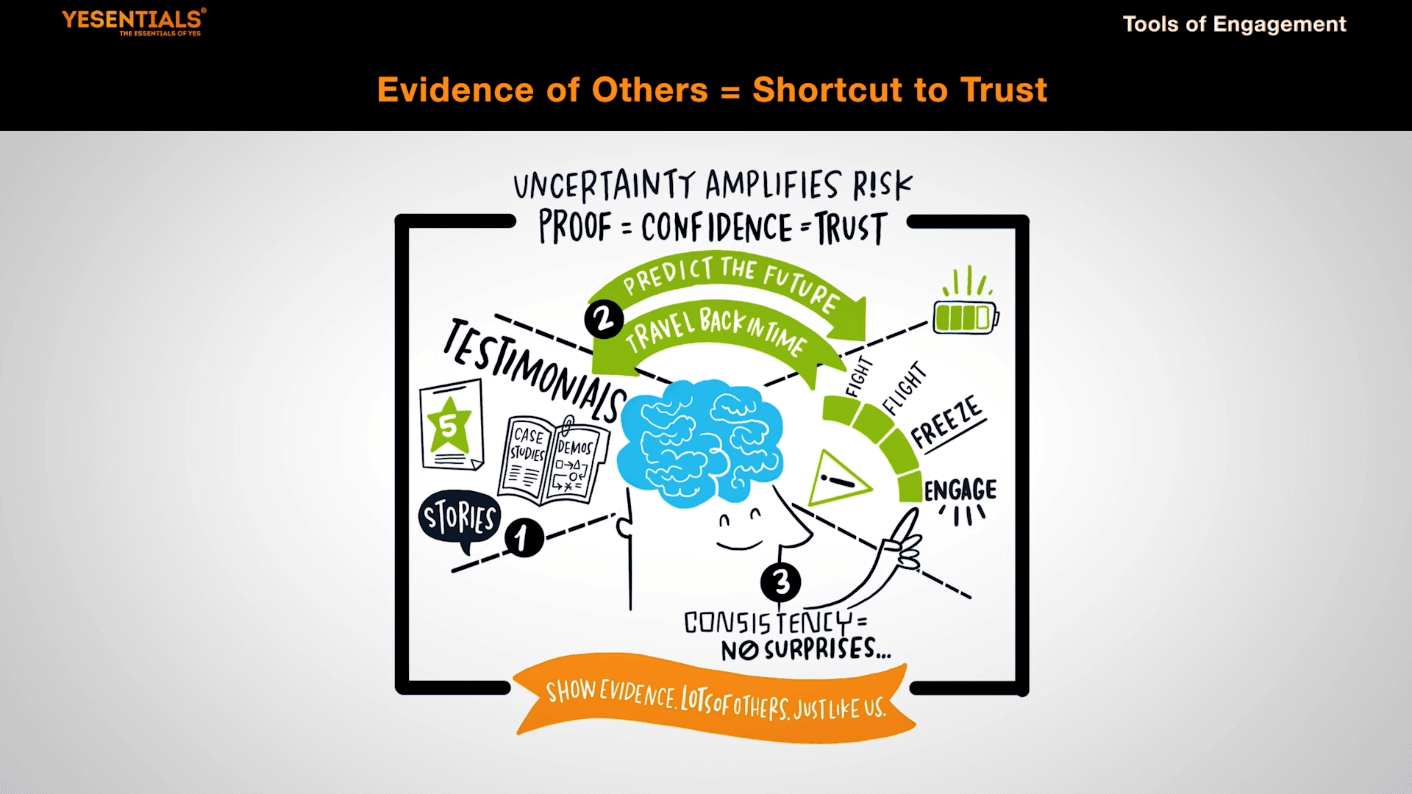 One of the fastest shortcuts to build engagement when presenting something new is to SHOW evidence of what others in SIMILAR situations have done—research shows a direct correlation… More Proof = More Confidence = More Engagement.